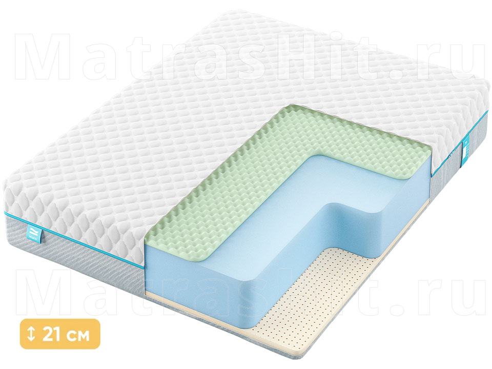 Беспружинный матрас Ролл Стандарт 18 Латекс М с комфортными слоями из натурального латекса и рельефной экопены. Высота матраса 21 см.