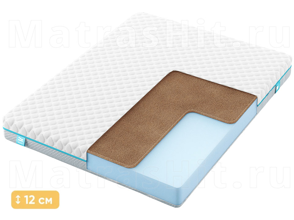 Тонкий беспружинный матрас Ролл Стандарт 10 Кокос на основе пенополиуретана с листом кокоса, высотой 12 см. Бренд Promtex.