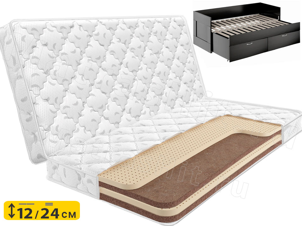 Когда кровать в сложенном положении матрас мягче, за счёт того, что верхний слой из латекса. Когда кровать раздвигается, верхним слоем становится слой кокоса и матрас становится более жестким.