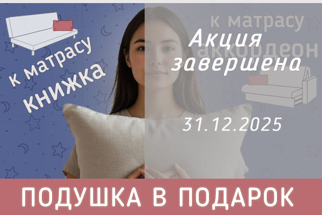 При покупке матраса для дивана с механизмом сложения аккордеон, книжка, матрасы для раздвижных кроватей Dimax серии СМ Флекс – 1 подушка в подарок независимо от размера.